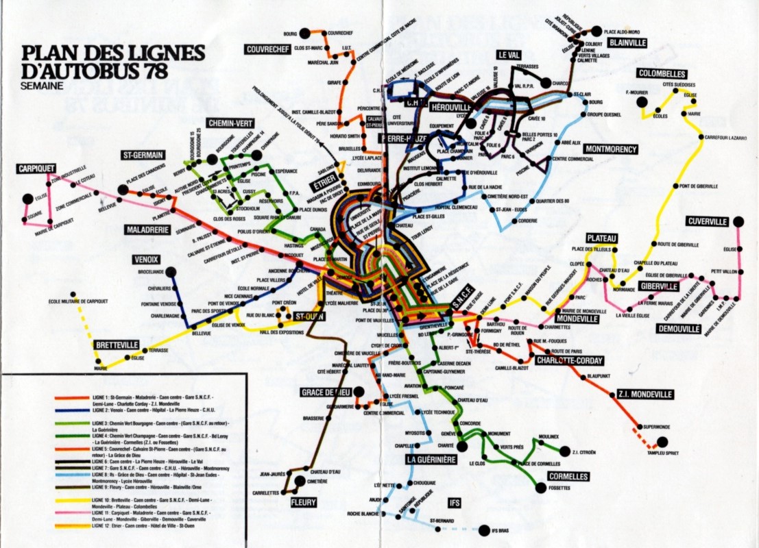 1978 n'est pas une date anodine, puisque c'est l'année où la C.T.C. (Compagnie de Transports de Caen) devient la C.T.A.C. (Compagnie des Transports de l'Agglomération Caennaise). En effet, suite à diverses expérimentations au cours des années précédentes, les bus commençaient à s'aventurer en dehors des limites de Caen. À partir de cette date, toute la périphérie proche est desservie, parfois par des lignes fortes. Et plus étonnant encore : la plupart des lignes actuelles se dessinent déjà, il y a 46 ans.