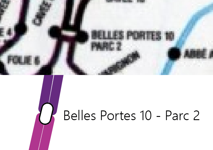 Certains de ces arrêts m'ont posé des problèmes d'interprétation, comme par exemple Belles Portes 10 - Parc 2, aujourd'hui PAJ-MJC, problème heureusement résolu par la fonction "Dates antérieures" de Google Street View : la PAJ-MJC a été construite sur un ancien rond-point, expliquant l'aspect imbriqué des anciennes lignes 6 et 7 qui devaient s'y entre-croiser.